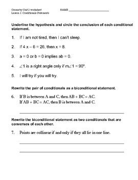 Geometry Worksheet 2.1 Conditional Statements Answers